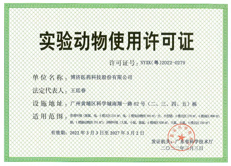 | 实验动物使用允许证 | |